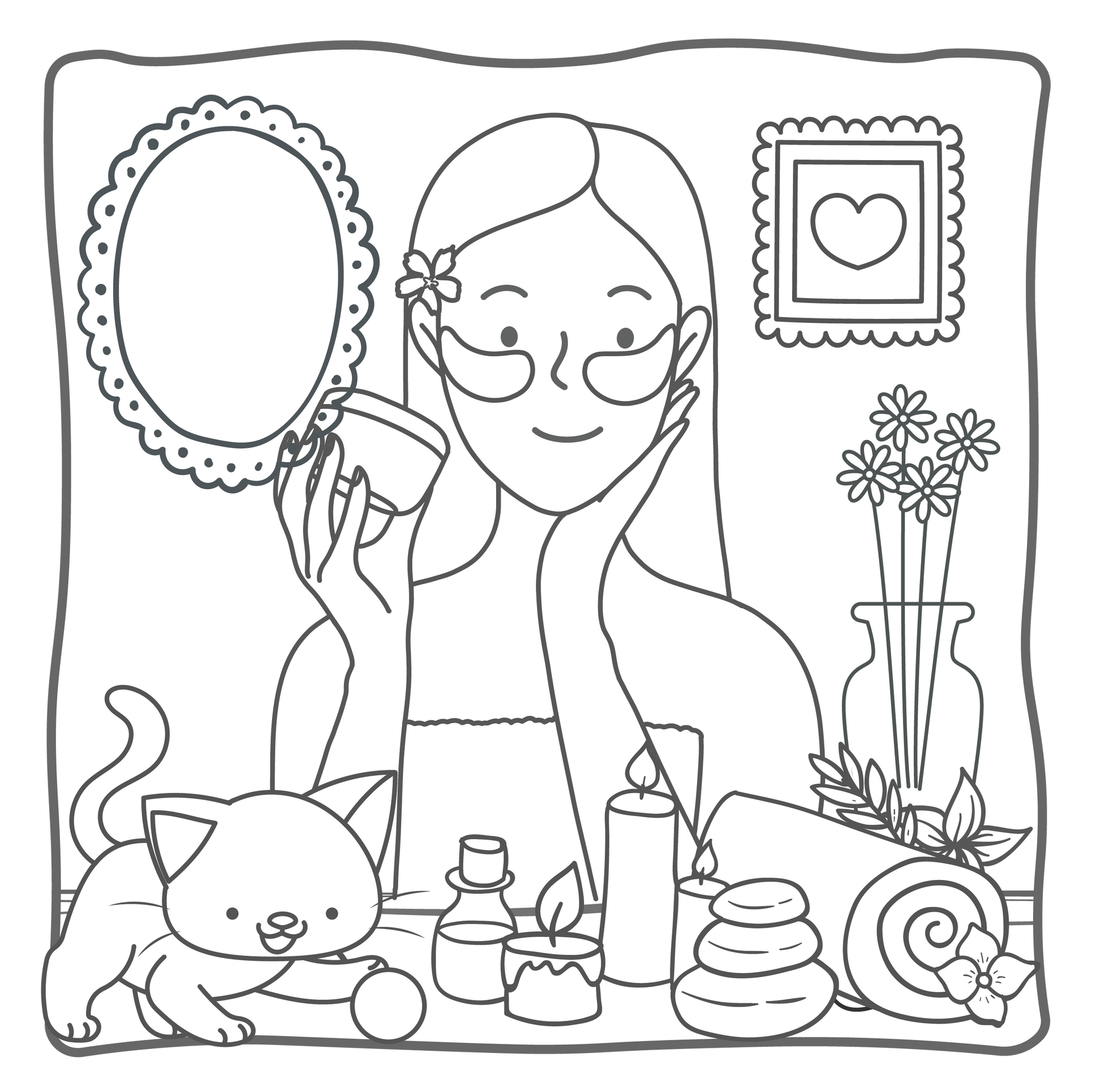 Step into a gentle world of soft lines, cozy moments, and girly details designed to help you breathe deeper, relax your mind, and reconnect with yourself.